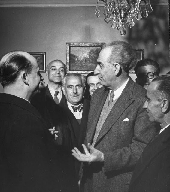 Ο Γεώργιος Παπανδρέου, αρχηγός του τότε του Σοσιαλιστικού Δημοκρατικού Κόμματος, με συνεργάτες του σε χαρακτηριστικό στιγμιότυπο.
