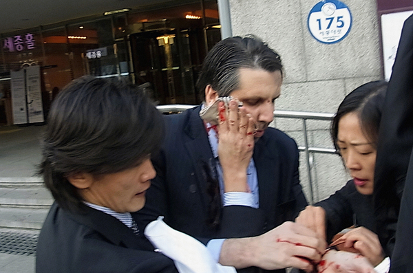 Επίθεση με μαχαίρι δέχτηκε σήμερα ο πρεσβευτής των ΗΠΑ στη Νότια Κορέα, Μαρκ Λίπερτ, κατά τη διάρκεια ενός φόρουμ που πραγματοποιείτο στη Σεούλ με θέμα την επανένωση της Βόρειας και της Νότιας Κορέας, δήλωσαν αστυνομικές πηγές και αυτόπτες μάρτυρες.