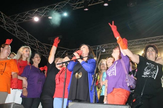 Πλήθος κόσμου βρέθηκε στο Σύνταγμα, στη συναυλία αλληλεγγύης στον αγώνα των καθαριστριών του υπουργείου Οικονομικών με τη Χαρούλα Αλεξίου, που διοργάνωσαν ο ραδιοφωνικός σταθμός «Στο Κόκκινο» και η «Αλληλεγγύη για όλους».