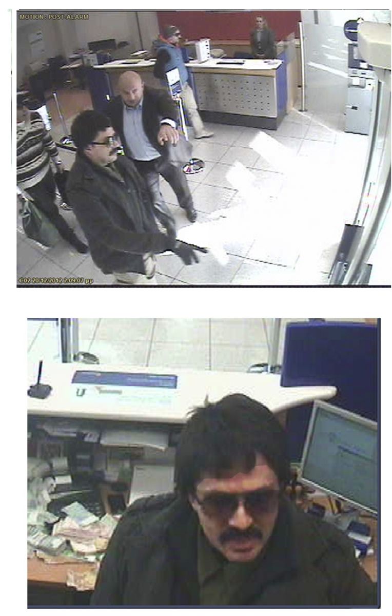 -Δώδεκα φωτογραφίες, που απεικονίζουν τρεις άγνωστους δράστες (συνεργούς των Μαζιώτη και Πετρακάκου), οι οποίοι συμμετείχαν στην ένοπλη ληστεία σε υποκατάστημα τράπεζας στην Ακράτα Αχαΐας, την 20-12-2012.