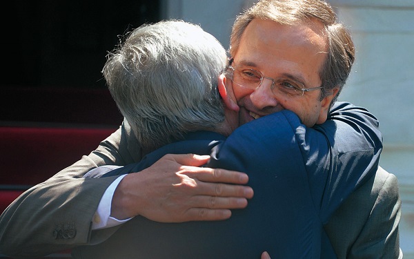 Ο σφικτός εναγκαλισμός με τον τέως πρωθυπουργό Αντώνη Σαμαρά