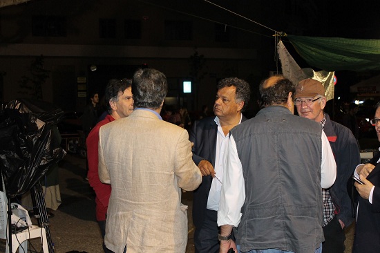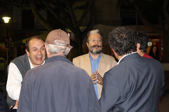 Λίγα μέτρα πιο κάτω, στην πλατεία Δασκαλογιάννη, Μιχάλης Κριτσωτάκης και Ηλίας Λυγερός συνομιλούν με μέλη του συνδυασμού και δημοσιογράφους...
