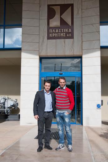(ο κ. Μάξιμος Σενετάκης με το Διευθυντή Παραγωγής των Πλαστικών Κρήτης, κ. Γιώργο Μαστρογιαννάκη)