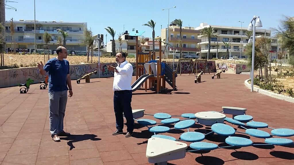 Όπως είπε ο κ.Κουράκης σήμερα μαζί με στελέχη της Τεχνικής υπηρεσίας θα επισκεφθεί τη συνοικία των Μεσαμπελιών όπου ξεκινά η κατασκευή και άλλων παιδότοπων.