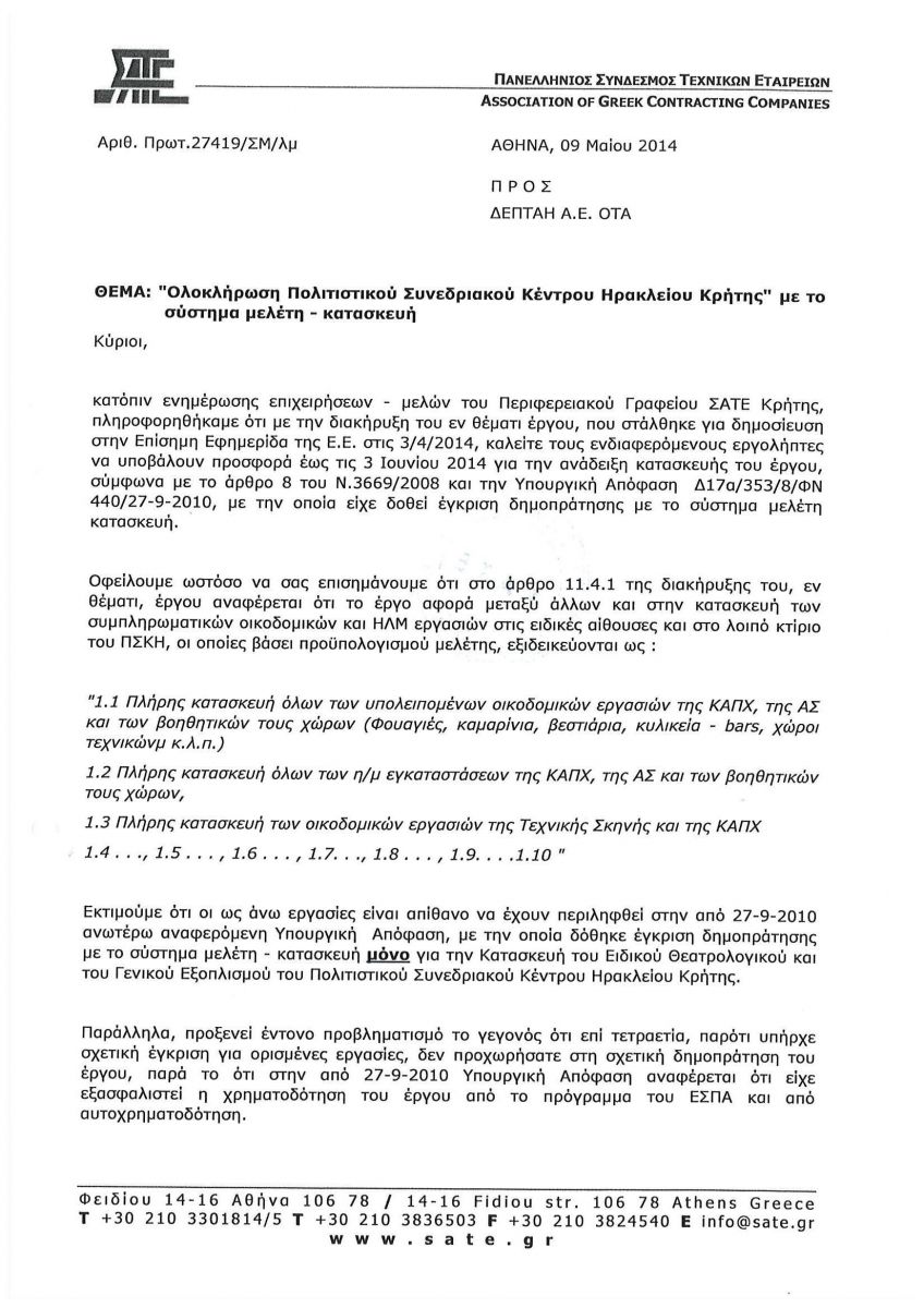Ακολουθούν οι επιστολές του Πανελλήνιου Συνδέσμου Τεχνικών Εταιρειών στη ΔΕΠΤΑΗ: