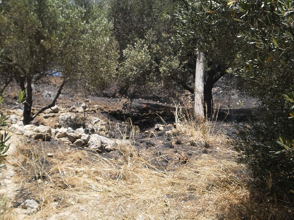 Λίγο μετά τις 3 το μεσημέρι η φωτιά τέθηκε υπό πλήρη έλεγχο έχοντας κάψει, σύμφωνα πάντα με τις εκτιμήσεις των πυροσβεστών, 5 στρέμματα δασικής έκτασης και 5 γεωργικής, ενώ δεν αποκλείεται τα στρέμματα να αυξηθούν όταν θα τελειώσει η επιχείρηση του Πυροσβεστικού Σώματος.. Στην περιοχή πνέουν ισχυροί άνεμοι οι οποίοι ανά τακτά χρονικά διαστήματα προκαλούν αναζωπυρώσεις. Στο σημείο έως και αργά το μεσημέρι παρέμειναν ν 2 πυροσβεστικά οχήματα με 8 υπαλλήλους και μία ομάδα πεζοπόρου τμήματος.