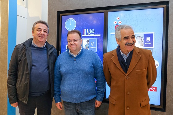 Ο κ. Γιώργος Τσαπρούνης, διευθυντής Εταιρικών Σχέσεων της WIND HELLAS με τον Περιφερειάρχη Κρήτης κ. Σταύρο Αρνατουτάκη και τον Αντιπεριφερειάρχη Ηρακλείου κ. Ευριπίδη Κουκιαδάκη.