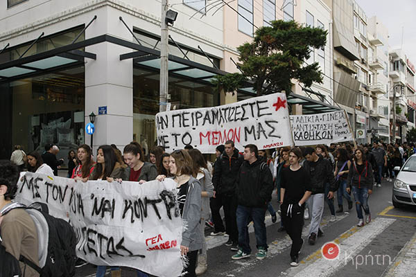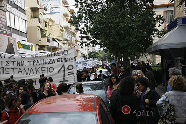 Στην πλατεία Ελευθερίας έδωσαν ραντεβού οι μαθητές σχολείων του νομού Ηρακλείου, οι οποίοι πραγματοποίησαν νέα συγκέντρωση και πορεία, σε ένδειξη διαμαρτυρίας για το Νέο Λύκειο, την Τράπεζα Θεμάτων και τις ελλείψεις εκπαιδευτικών. Κρατώντας πανό και φωνάζοντας συνθήματα οι μαθητές μαζί με εκπαιδευτικούς προχώρησαν στο νέο μαθητικό συλλαλητήριο.