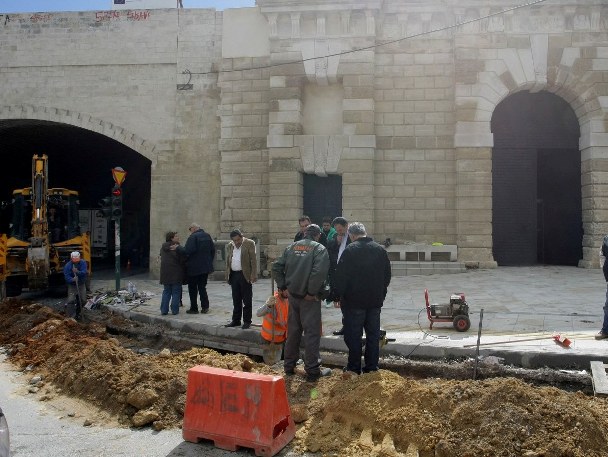Παρά τη βροχή συνεχίζονται και σήμερα Κυριακή οι εργασίες για την ηλεκτροδότηση της Πύλης Ιησού.