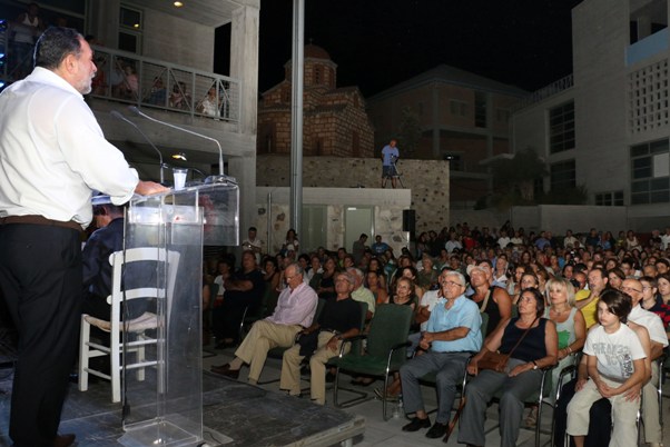 « Βρισκόμαστε στον αίθριο χώρο του Πολιτιστικού και Συνεδριακού Κέντρου Ηρακλείου. Ενός συγκροτήματος Πολιτισμού το οποίο, υπήρξε στόχος όλων των Δημοτικών Συμβουλίων των τελευταίων 40 χρόνων και βέβαια και της σημερινής Δημοτικής Αρχής από το 2003 και μετά.