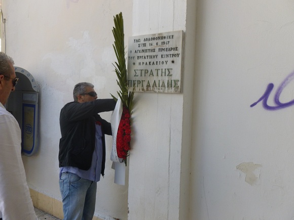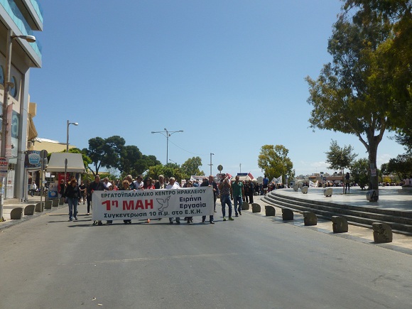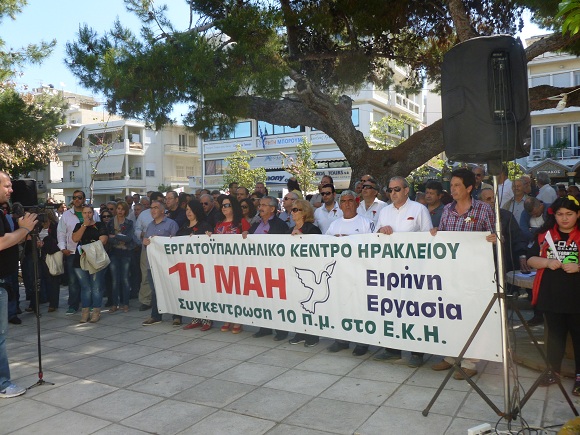 Τίμησε και φέτος την Εργατική Πρωτομαγιά το Ηράκλειο με το Εργατικό Κέντρο Ηρακλείου και το Νομαρχιακό Τμήμα της ΑΔΕΔΥ να πραγματοποιούν εκδηλώσεις στη μνήμη των νεκρών του εργατικού κινήματος. Στις 10 το πρωί της Πέμπτης, ΓΣΕΕ και ΑΔΕΔΥ συναντήθηκαν έξω από το Εργατικό Κέντρο Ηρακλείου ενώ αργότερα έγινε και η κατάθεση στεφάνων στο μνημείο πεσόντων του συνδικαλιστικού κινήματος καθώς και στους τόπους όπου δολοφονήθηκαν οι αδελφοί Χατζηγεωργίου και ο Στρατής Περγαλίδης.