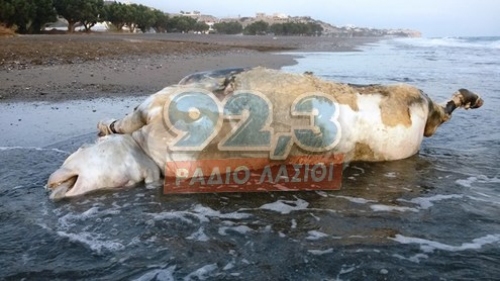 Έναν ταύρο, ξέβρασε χθες στις 6 περίπου το απόγευμα η θάλασσα, στην περιοχή του Αγίου Ανδρέα Ιεράπετρας.