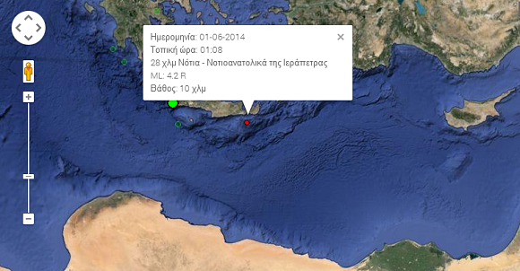 Ποδαρικό με σεισμό έκανε ο Ιούνιο. Σεισμική δόνηση 4,2 της κλίμακας Ρίχτερ σημειώθηκε στη 01.08 τη νύχτα του Σαββάτου 28 χιλιόμετρα Νότια - Νοτιοανατολικά της Ιεράπετρας.