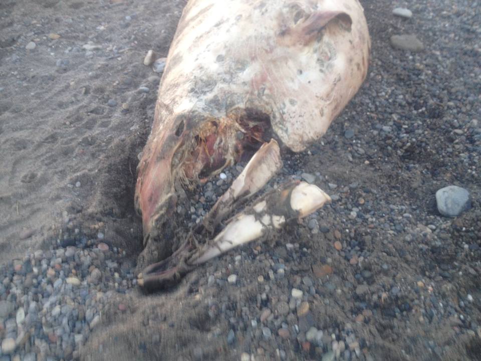 Από το θαλάσσιο πλάσμα, που δεν έχει διευκρινιστεί ακόμα τι ακριβώς είναι, είχε φαγωθεί σχεδόν ολόκληρο το κεφάλι, όπως βλέπετε και στις φωτογραφίες του zarpa.gr.