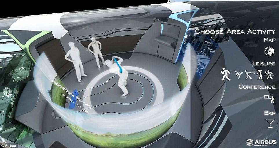 Και τέλος, θα υπάρχουν άνετοι χώροι, μπαρ όπου οι ταξιδιώτες θα μπορούν να κάνουν τυχόν επαγγελματικές συναντήσεις. Επίσης, θα υπάρχει η δυνατότητα να παίξουν τένις, γκολφ και άλλα αθλήματα στον εικονικό τοίχο των αθλητικών δραστηριοτήτων. Και φυσικά για τις γυναίκες θα μπορούν να κάνουν τα εικονικά τους ψώνια από τα video wall όπου θα προβάλλουν συλλογές ρούχων.