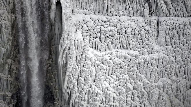 Σύμφωνα με τη Μετεωρολογική Υπηρεσία της Αμερικής, το δριμύ ψύχος, θα αρχίσει να υποχωρεί από το τέλος της εβδομάδας, σταδιακά. Αν και το νερό στους καταρράκτες, δε σταμάτησε να κυλά, σε ένα μεγάλο μέρος τους, πάγωσε για τα καλά. Η θερμοκρασία άγγιξε τους -22,5C και όπως αναφέρεται στο δημοσίευμα της Guardian, το θερμόμετρο βρίσκεται 19 βαθμούς κάτω από τα φυσιολογικά επίπεδα της εποχής. Μάλιστα, στην Ινδιανάπολη εχθές το θερμόμετρο έδειξε -45 βαθμούς και ο Δήμαρχος της περιοχής δήλωσε χαρακτηριστικά «Μείνετε μέσα στο σπίτι γιατί εάν εκτεθείτε στο κρύο έστω και δέκα λεπτά, θα πεθάνετε.» Ήδη, οι νεκροί λόγω ψύχους έχουν φτάσει τους 16.