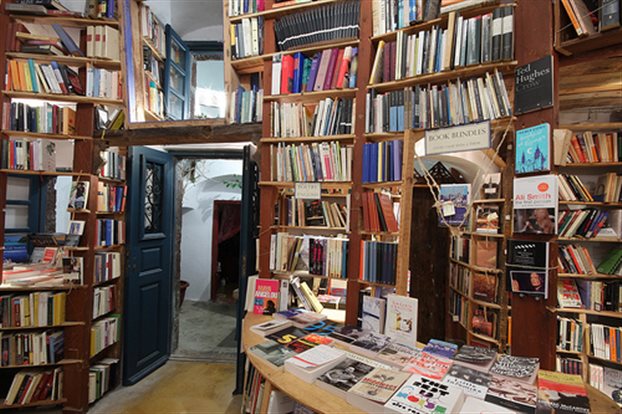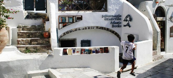 Φωτογραφίες από το βιβλιοπωλείο "Ατλαντίς" της Σαντορίνης: