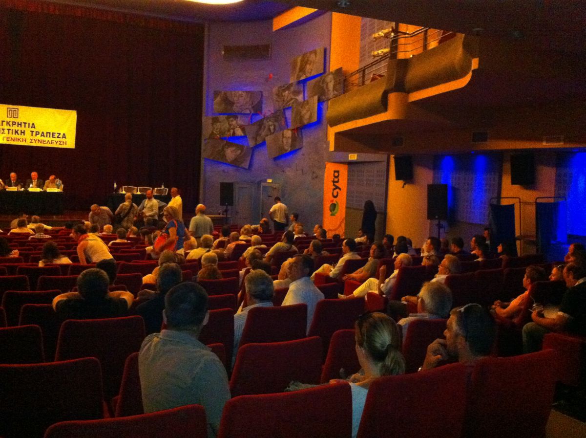 Η θετική οικονομική πορεία της Παγκρήτιας Συνεταιριστικής Τράπεζας, παρά την πρωτοφανή και μακροχρόνια κρίση, παρουσιάστηκε στη Γενική Συνέλευση της που ολοκληρώθηκε το μεσημέρι του Σαββάτου στο κινηματοθέατρο Αστόρια .