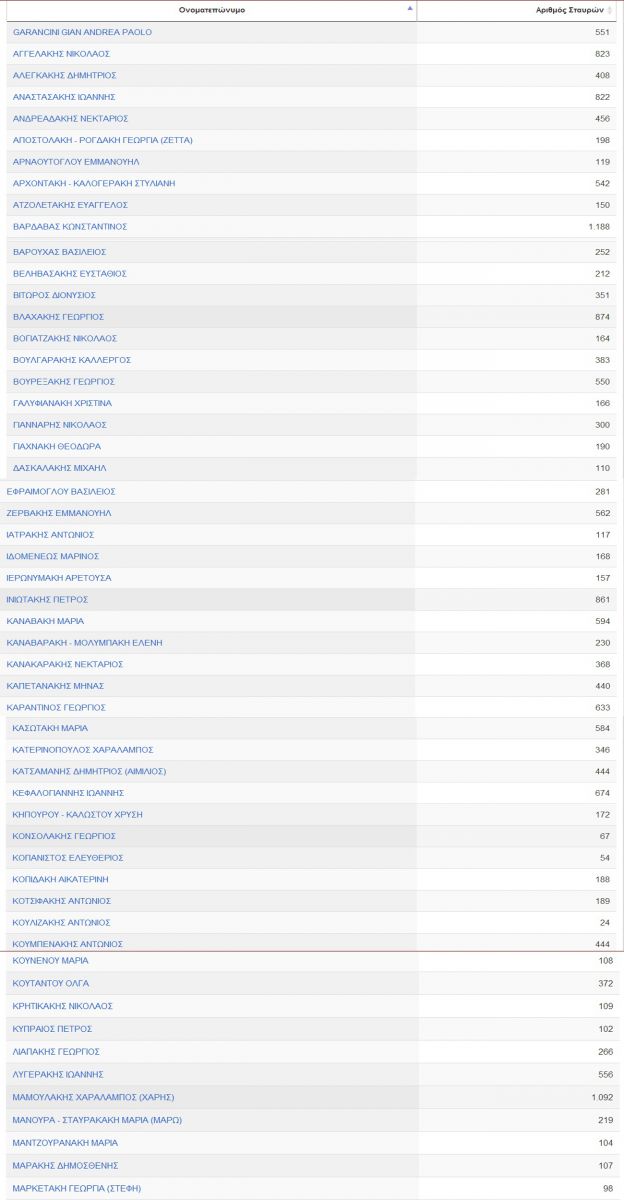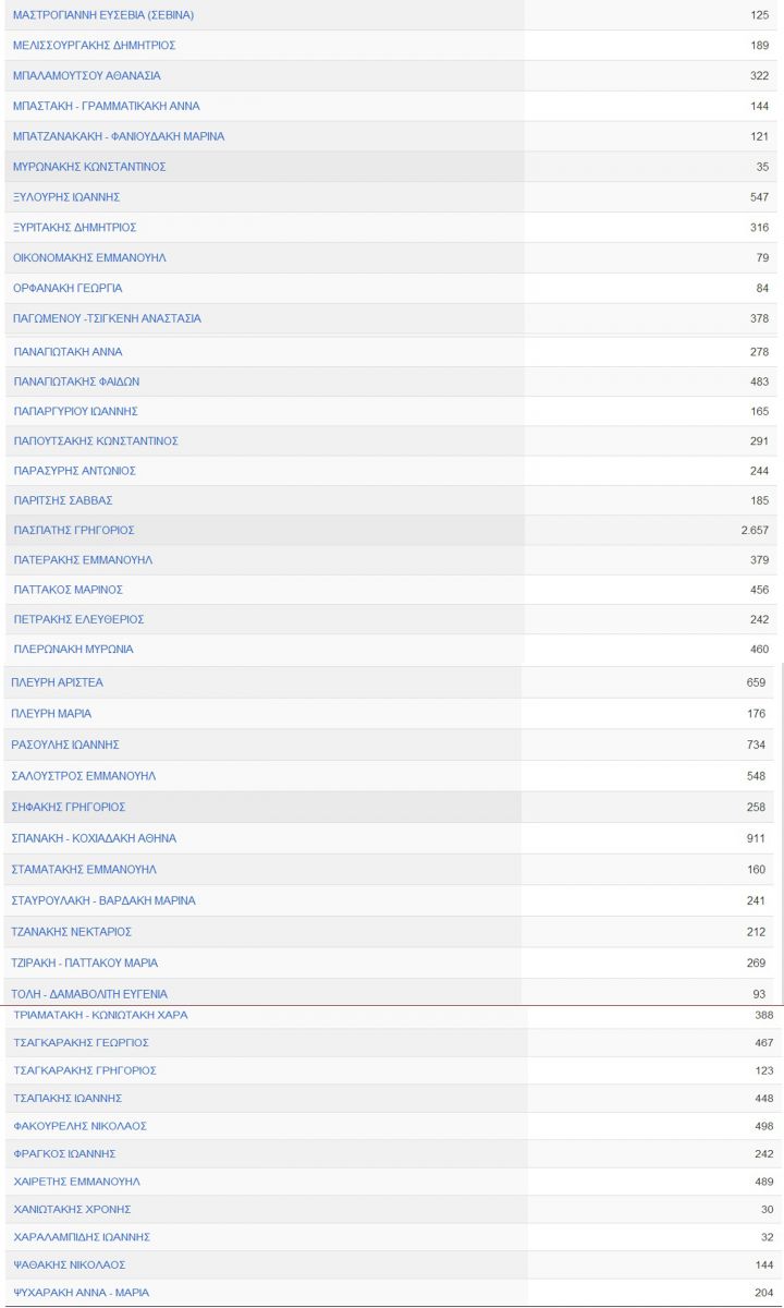 Σε 184 απο τα 264 εκλογικά τμήματα, οι σταυροί των υποψηφίων του Βασίλη Λαμπρινού διαμμορφώνονται ως εξής:
