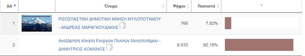 Δήμος Μυλοποτάμου σε 46 από τα 46 εκλογικά τμήματα