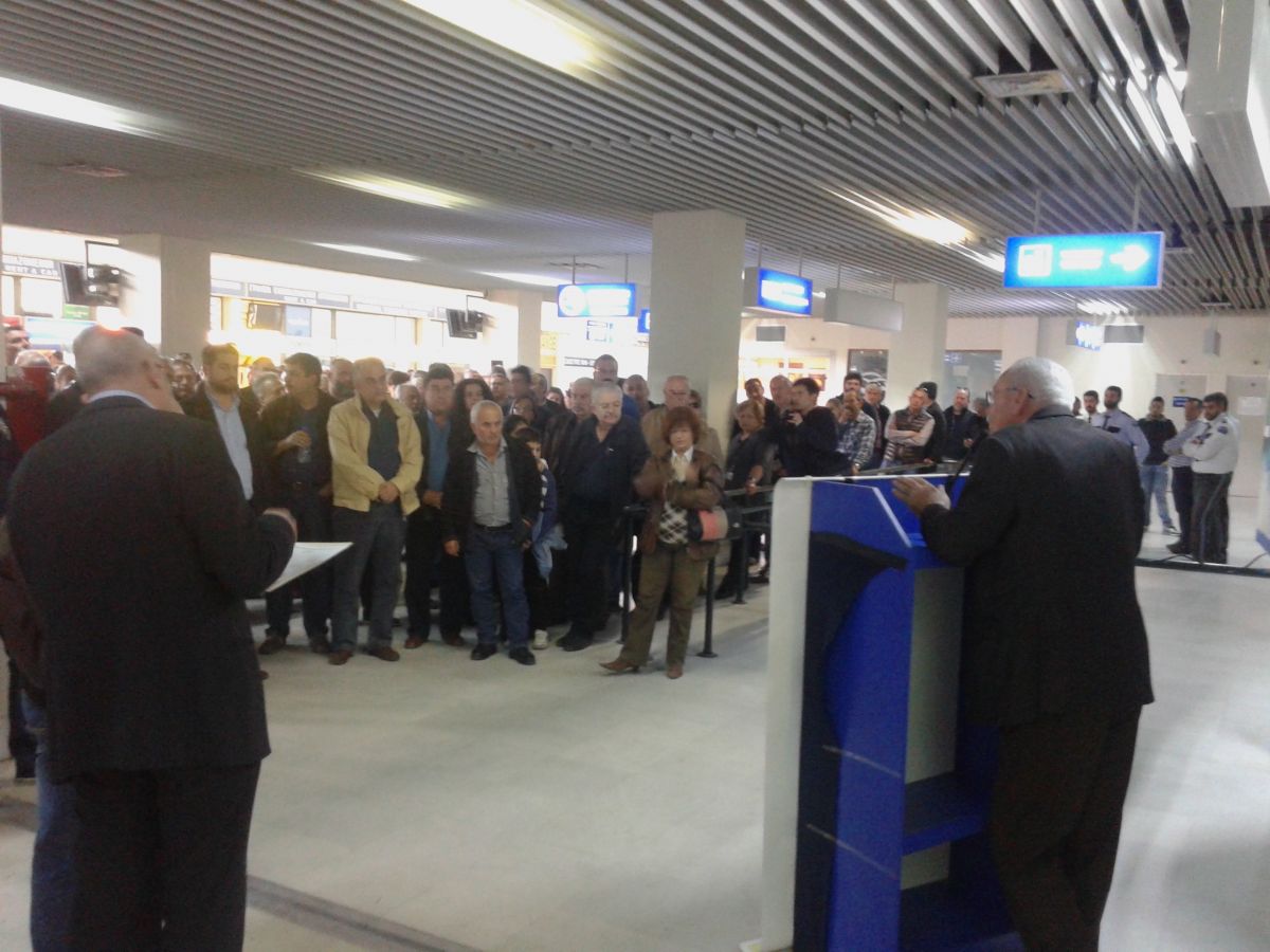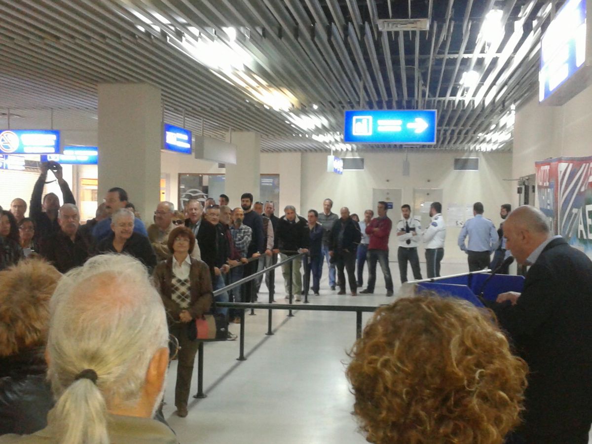 Παρότι η συμμετοχή δεν ήταν η αναμενόμενη, οι φορείς της δυτικής Κρήτης συγκεντρώθηκαν σήμερα στο αεροδρόμιο των Χανίων για να εκφράσουν την αντίθεση τους στην προωθούμενη ιδιωτικοποίηση του.