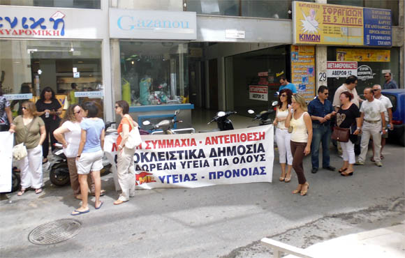 Συμπαραστάθηκε στην παράσταση διαμαρτυρίας το Νομαρχιακό τμήμα Ηρ της ΑΔΕΔΥ και το ΕΚΗ.