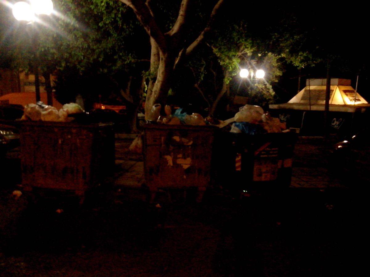 Επί της Μίνωος είναι τοποθετημένοι στη σειρά 7 (!) κάδοι –τέσσερις σκουπιδιών και τρεις ανακύκλωσης.