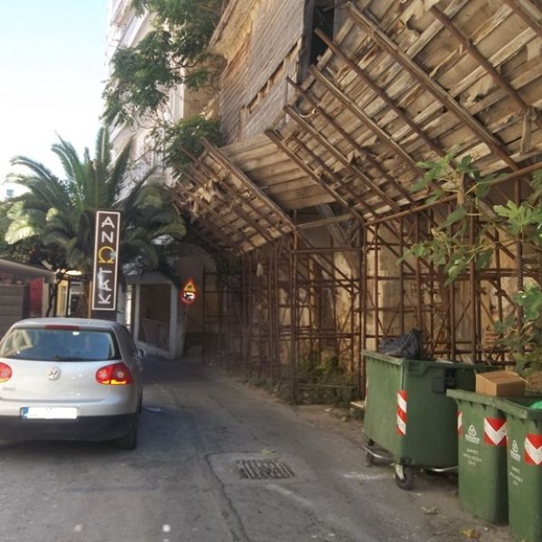 Παρατημένο για χρόνια, στέκεται έτσι, ετοιμόρροπο, πάνω από τα κεφάλια χιλιάδων ντόπιων και επισκεπτών που περνούν καθημερινά από το σημείο.