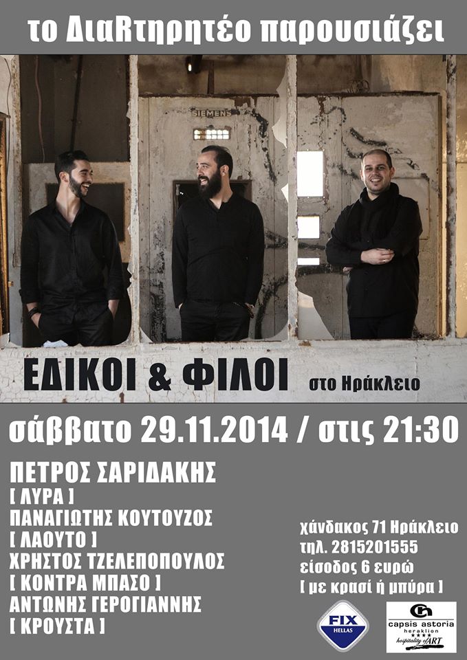 Οι "Ειδικοί και Φίλοι", το Σάββατο 29 Νοεμβρίου 2014 θα βρίσκονται στο ΔιαRτηρητέο (Χάνδακος 71) και ώρα 21:30.