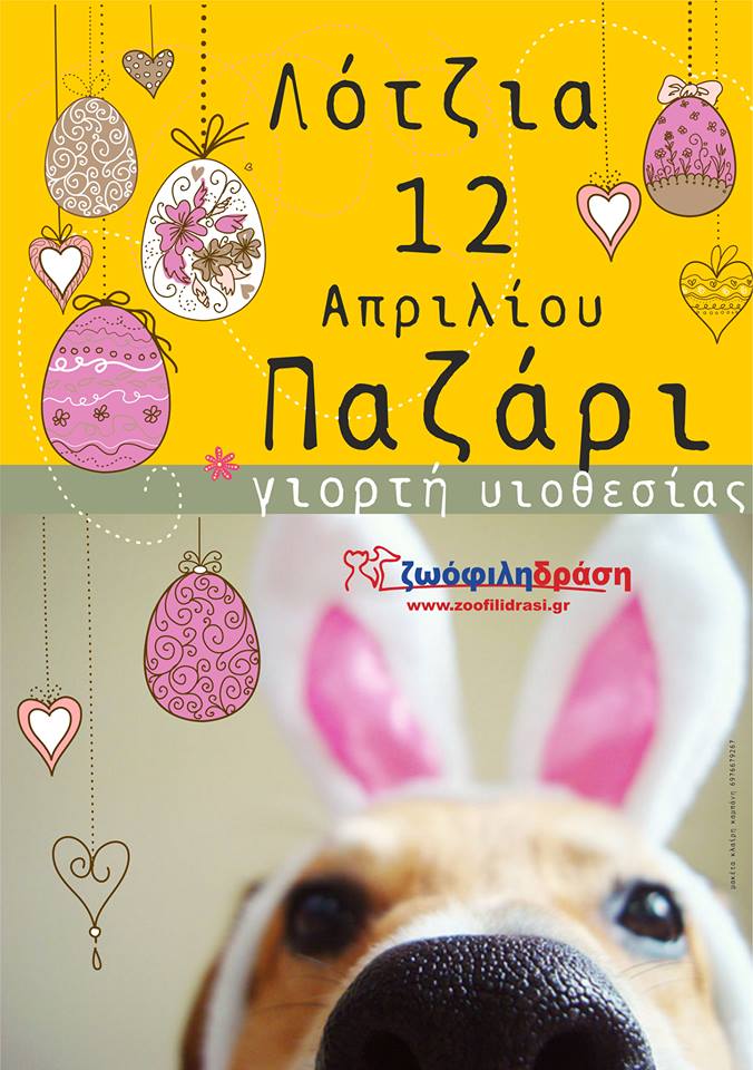Το σωματείο Ζωόφιλη Δράση πραγματοποιεί παζάρι αγάπης και γιορτή υιοθεσίας για τα αδέσποτα ζώα το Σάββατο 12 Απριλίου στην Λότζια.