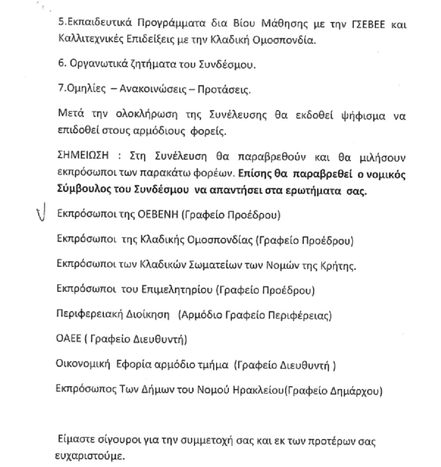 Έκτακτη Γενική Συνέλευση θα πραγματοποιηθεί από το Σύνδεσμο κουρέων κομμωτών καταστηματαρχών Ηρακλείου την Κυριακή 9 Νοεμβρίου στις 17:00 μετά από από απόφαση του διοικητικού συμβουλίου. Η συνέλευση θα πραγματοποιηθεί στο Επιμελητήριο Ηρακλείου στην αίθουσα Καστελάκη. Σε ανακοίνωση του συνδέσμου αναφέρεται: