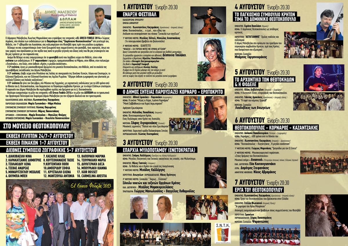 Τα πάντα είναι έτοιμα για το Φεστιβάλ El Greco – Φόδελε 2014 που διοργανώνει για μια ακόμα χρονιά ο δήμος Μαλεβιζίου και ο Δημοτικός Οργανισμός Πολιτισμού Περιβάλλοντος και Αθλητισμού Μαλεβιζίου (Δ.Ο.Π.Π.Α.Μ.), υπό την αιγίδα του Υπουργείου Πολιτισμού, της UNESCO – Όμιλος Τεχνών Λόγου και Επιστημών και του Παγκοσμίου Συμβουλίου Κρητών.