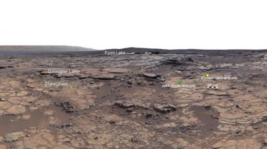 Παρακάτω βλέπουμε την Yellowknife Bay, την ακτή από όπου πήρε δείγματα το Curiosity.