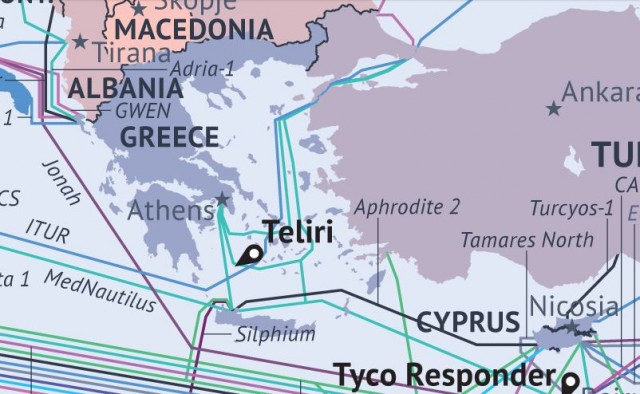 Αν κάνουμε zoom στο χάρτη που υπάρχει στο submarine-cable-map-2014.telegeography.com, μπορούμε να εντοπίσουμε τα Ελληνικά σημεία ενδιαφέροντος. Βλέπουμε ότι τα Χανιά και η Αθήνα, είναι σημαντικές περιοχές για την Ελλάδα, ενώ η Κύπρος είναι σταθμός εξαιρετικής σπουδαιότητας για το Ευρωπαϊκό, το Ασιατικό αλλά και το Αφρικάνικο Internet.