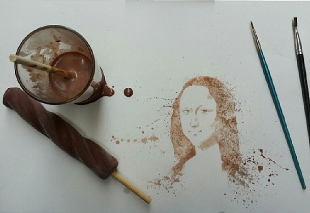 Δεν κάνει τίποτα διαφορετικό από αυτό που κάνουν οι ζωγράφοι. Ζωγραφίζει είτε σε χαρτί είτε σε καμβά, με πινέλα και για χρώματα έχει ... παγωτό.